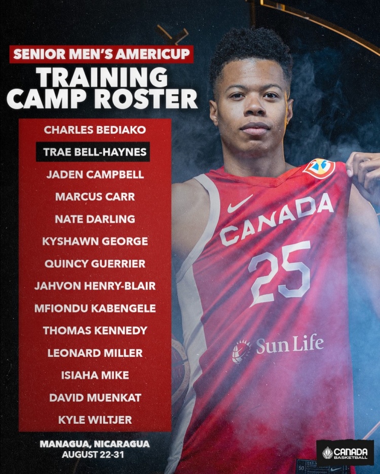 8月13日讯 加拿大男篮公布了2025美洲杯训练营名单,奇才24年首轮秀凯肖恩-乔治和森林狼前锋莱昂纳德-米勒领衔,具体如下: